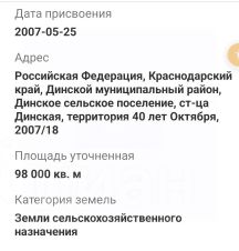 Земля С/Х назначения, общая площадь земли 9,8 га.