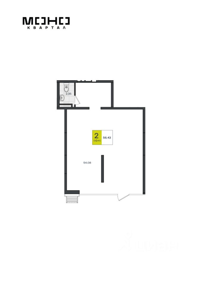 Помещение свободного назначения площадью 56.43 находится на 1-м этаже нового жилого среднеэтажного дома. Предчистовая отделка позволяет сделать ремонт по своему усмотрению, планировка свободная. Все коммуникации центральные, высота потолков 3, 64 м. Фасад из керамического кирпича с декоративными вставками и витражным остеклением.