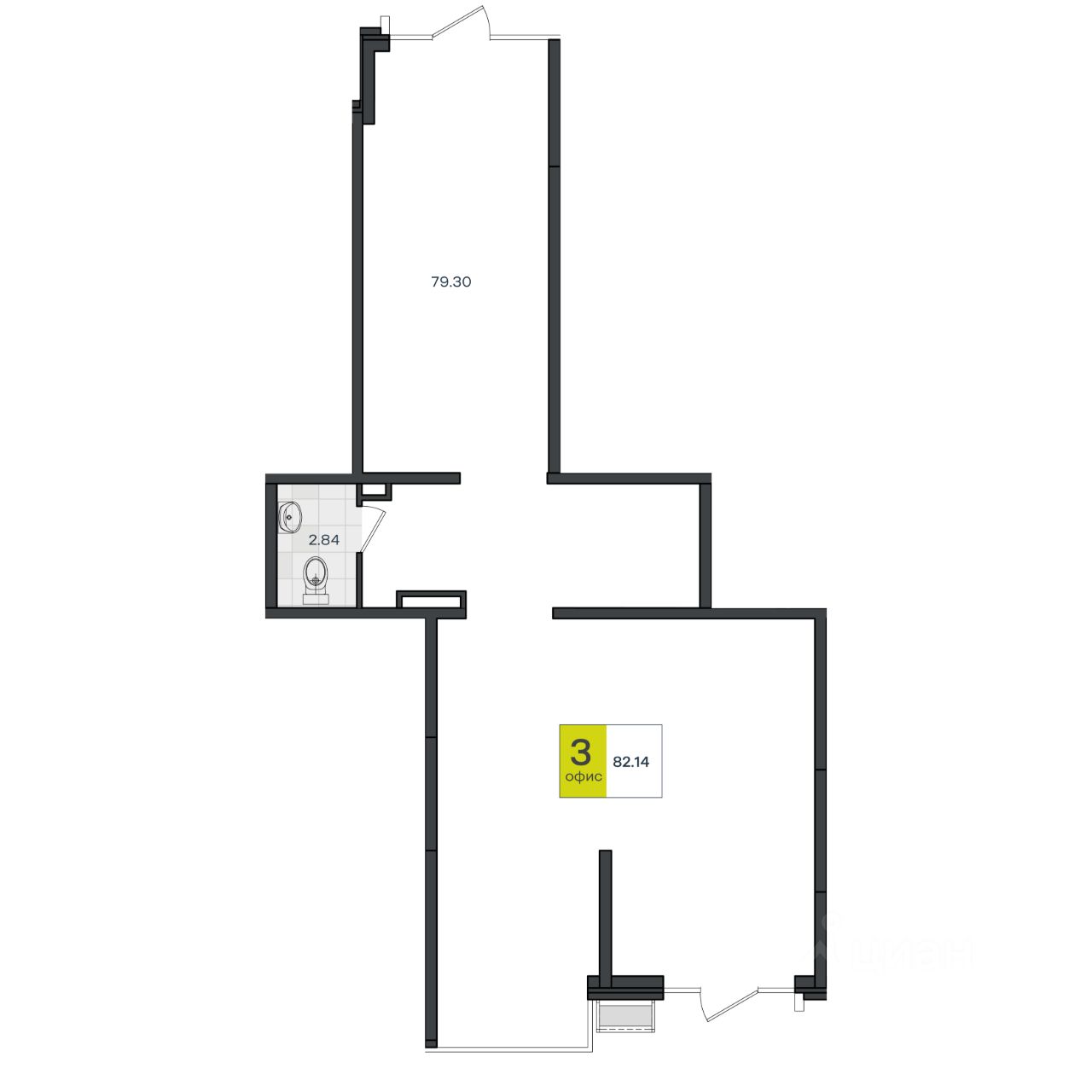 Офисное помещение площадью 82.14 находится на 1-м этаже нового жилого среднеэтажного дома. Помещение в предчистовой отделке, есть возможность сделать ремонт по своему усмотрению, планировка свободная. Идеально для офиса вашей организации или компании. Все коммуникации центральные, высота потолков 3, 64 м.