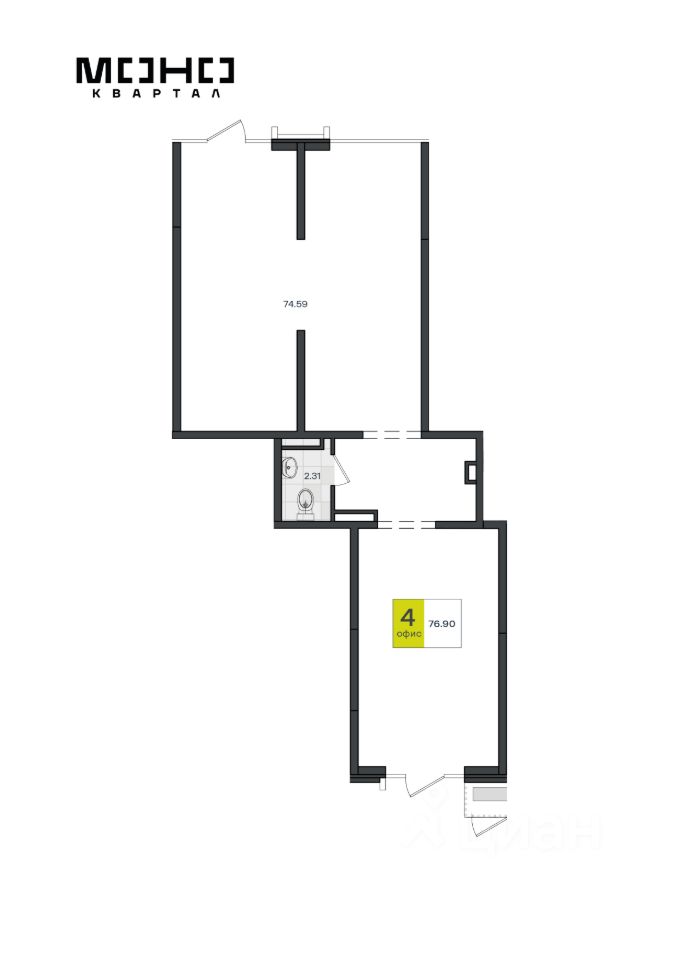 Офисное помещение площадью 76.90 находится на 1-м этаже нового жилого среднеэтажного дома. Помещение в предчистовой отделке, есть возможность сделать ремонт по своему усмотрению, планировка свободная. Идеально для офиса вашей организации или компании. Все коммуникации центральные, высота потолков 3, 64 м.