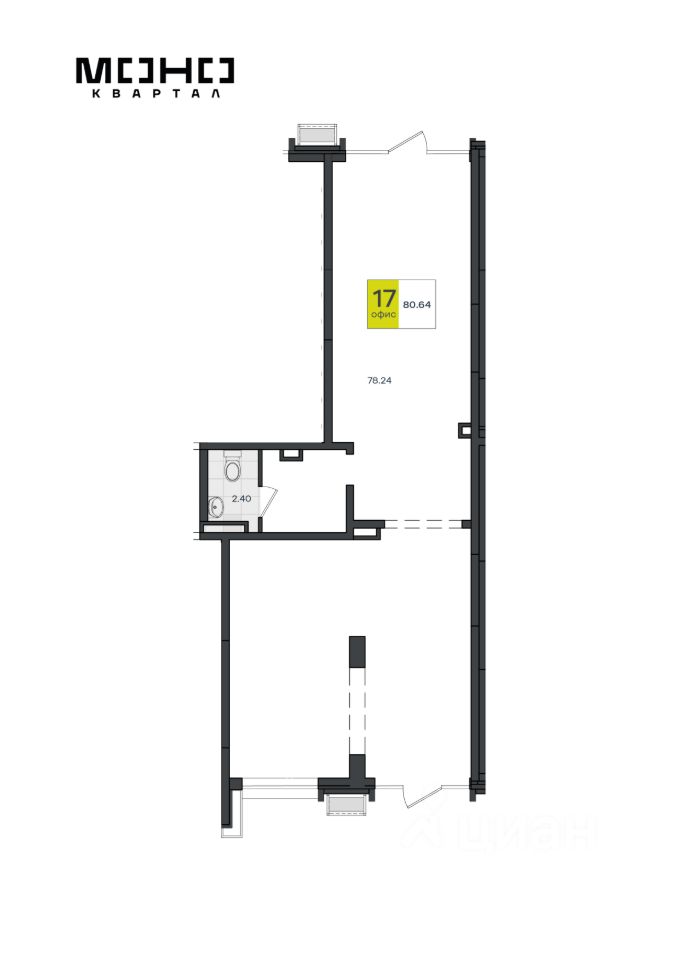 Офисное помещение в современном клубном ЖК в развивающемся районе Офисное помещение площадью 80.64 находится на 1-м этаже нового жилого среднеэтажного дома. Помещение в предчистовой отделке, есть возможность сделать ремонт по своему усмотрению, планировка свободная. Идеально для офиса вашей организации или компании. Все коммуникации центральные, высота потолков 3, 64 м. Фасад из керамического кирпича с декоративными вставками и витражным остеклением. Экологичное место для комфортной работы за счет удаленности от промзон и близости к парковым массивам. Комплекс имеет выезды сразу на несколько шоссе Ейское и Ростовское, а также на ул. Дзержинского, быстрый и удобный доступ к остановкам общественного транспорта. МОНО квартал расположен в посёлке Березовый вблизи улицы Профессора Малигонова, состоит из 4-х домов высотой всего 8 этажей. Вблизи ЖК расположены две школы, рядом строится еще одна на 1 550 мест в смену. До детских садов 5 минут прогулочным шагом, в непосредственной близости 2 государственных и несколько частных. Детская поликлиника в 5 минутах езды. До мультикомплекса "Город спорта" 15 минут, до мегацентра "Красная площадь" 18 минут. Инфраструктура района включает в себя торговые и фитнес-центры, кафе и магазины, городской парк "Сосновый". Вдоль внешнего периметра ЖК расположен вместительный паркинг на 639 мест. Благодаря сквозным подъездам жилого дома, возможны различные типы доступа в коммерческие блоки: сквозной, с внешнего периметра, с торца изнутри и снаружи. Срок сдачи ЖК 4 квартал 2025 года. Свободная планировка 616 квартир Просторный паркинг Комплексная застройка района Развитая внутренняя инфраструктура Витражное остекление Стильные фасады Лаконичная архитектура Сквозные подъезды Рядом остановки общественного транспорта