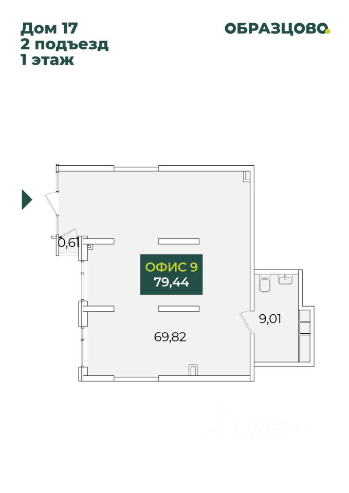 Офисное помещение в микрорайоне с полноценной внутренней инфраструктурой