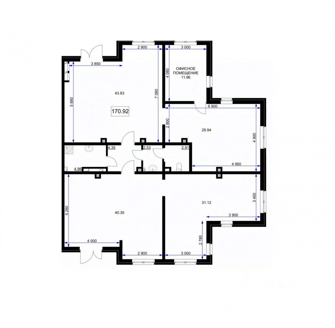 В продаже коммерческое помещение 170,92м2, расположенное в новом ЖК "Комфорт+" класса.