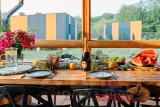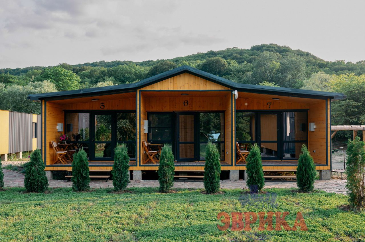 Комплекс в стиле барнхаус: 8 домов+ 3 номера( 7 домов 60 кв.м.; 1 дом 140кв.м.+ 3 номера по 20кв.м).+ закрытая беседка вместимостью до 80 человек