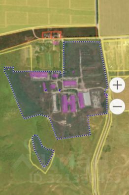 Площадь земельного участка 16 ГА, на территории находится 2 озера, 3 коровника, 1 телятник, телятник родилка 2, контора животновода 1, Кормоцех, водонапорная башня 1, весовая с помещением 1, склад для зерновых культур 1 шт, сенажная яма 2 шт, небольшое здание для складских нужд 1, навес для техники 1, электроподстанции 2 шт.