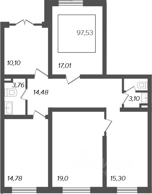 Коммерческое помещение 97.53м2, в новом ЖК Комфорт+ класса