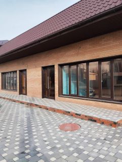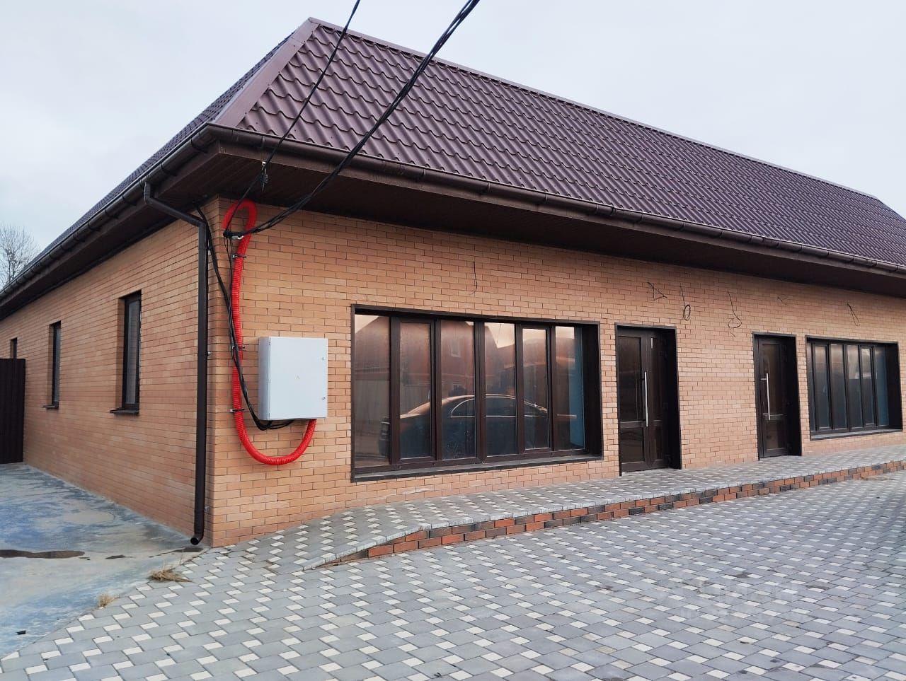 Внутри здания полностью всё готово для эксплуатации. Подключено электричество, вода, отопление. Большой холл, несколько кабинетов, два санузла, болерная, большой зал на 100 кв.м.. Есть запасной выход, ведет на заднюю часть участка. Двор асфальтирован, обнесен забором. Территория перед зданием выложена плиткой.