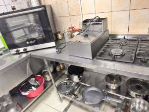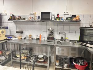 Кафе полностью оборудовано всей необходимой новой мебелью на 80 посадочных мест.Кухня оборудована всей необходимой техникой, в том числе: плиты, холодильники, конвектомат, тестомес и мн др. В кафе имеется 4 санузла.