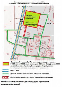 Кроме съезда с Фад Дон в аренде сроком до 2039 года находиться дополнительный заезд с дороги местного значения с правом оформления в собственность после строительства.