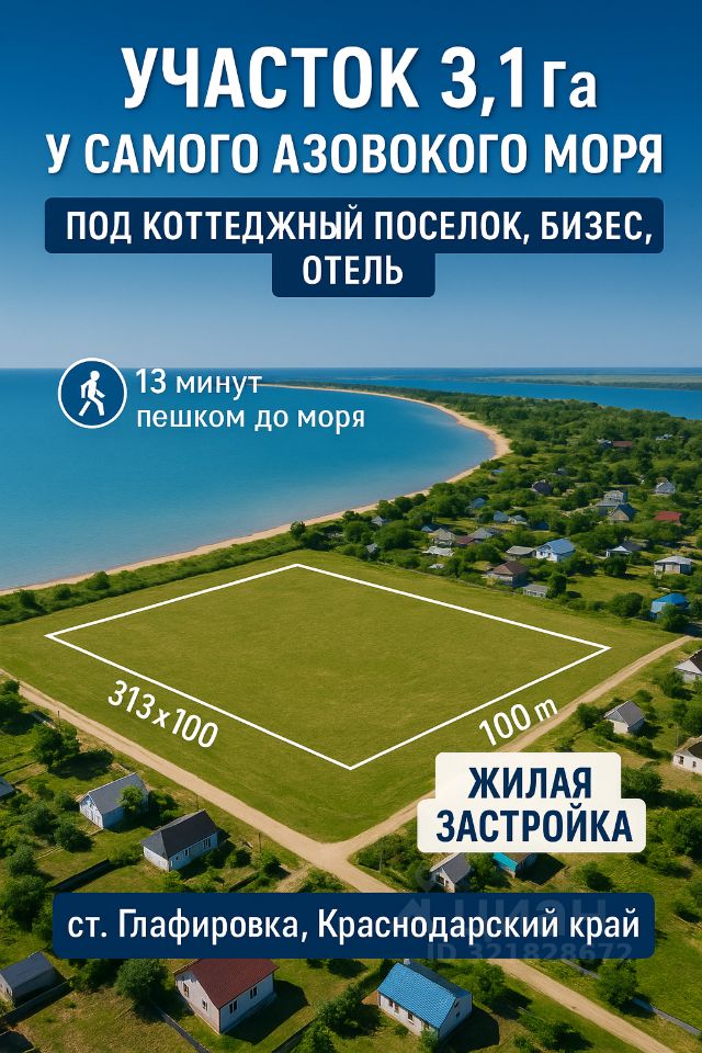 Продается участок мечты на берегу Азовского моря — идеально под строительство коттеджного поселка, таунхаусов, гостиничного комплекса или курортной резиденции.