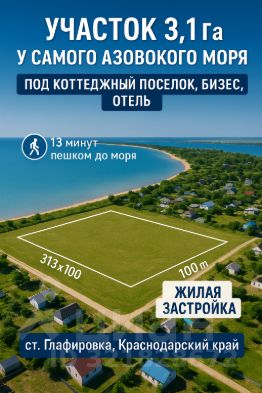 Уникальный участок у моря под коттеджный поселок | 3,1 Га | Азовское море, Краснодарский край