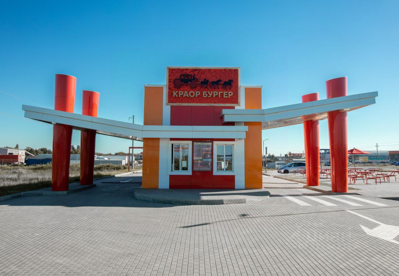 На участке находится ресторан быстрого питания. Красивое, яркое и привлекающее внимание здание.