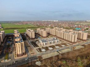 в центре жилого массива с высокой степенью застройки.