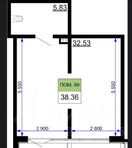 Коммерческое помещение, площадью 38,36 кв.м, находится на 1м этаже многоэтажного дома,