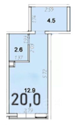 - общая площадь 20 кв.м., правильная форма, есть возможность увеличения площади за счет объединения с соседним помещением