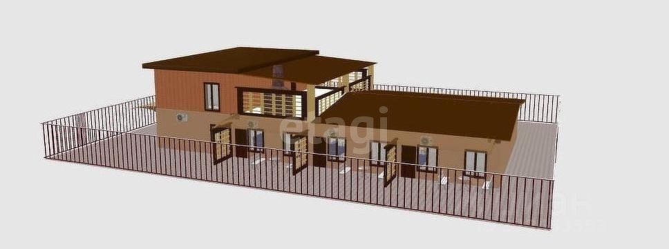 Помещение по проекту представляет из себя здание, в котором 1 этаж отводится под гостевые номера, а второй этаж оборудован для жизни хозяев, а так же на нем предусмотрена эксплуатируемая терраса.