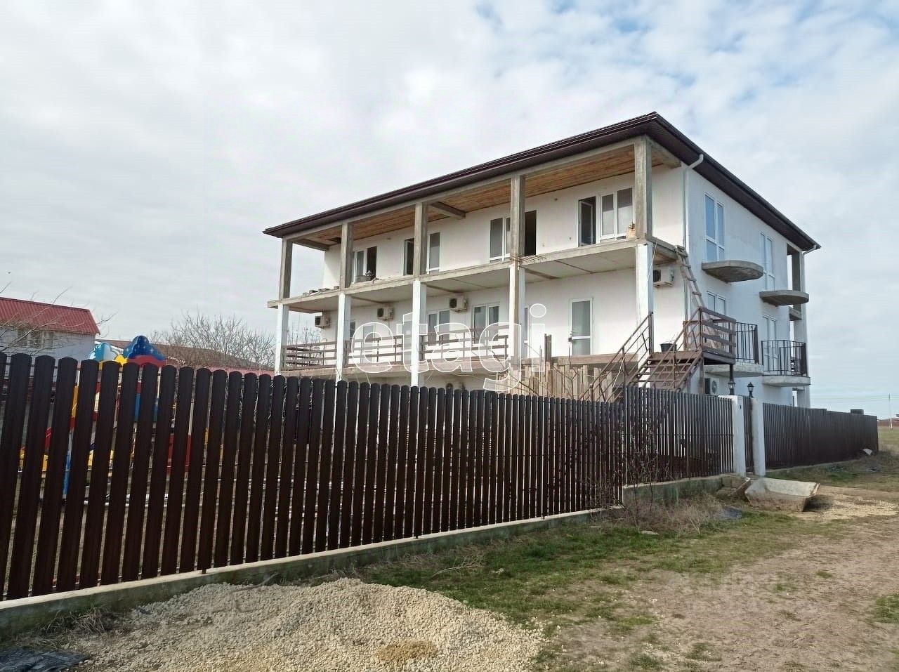 Продам 3-этажный гостевой дом в курортном поселке Кучугуры на первой линии от моря. В гостевом доме 24 номера. 16 номеров полностью оборудованы мебелью, сантехникой, сплит. системами и эксплуатируются, 8 номеров достроены зимой 2021 года. На каждом этаже по 8 номеров (4 слева и 4 справа). Номера рассчитаны на 3 -5 человек.