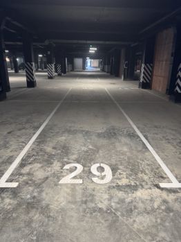 Машиноместа расположены в одном ряду одно за другим, находятся на 1 этаже парковки, выход из нее сразу в лифтовый холл или во двор.