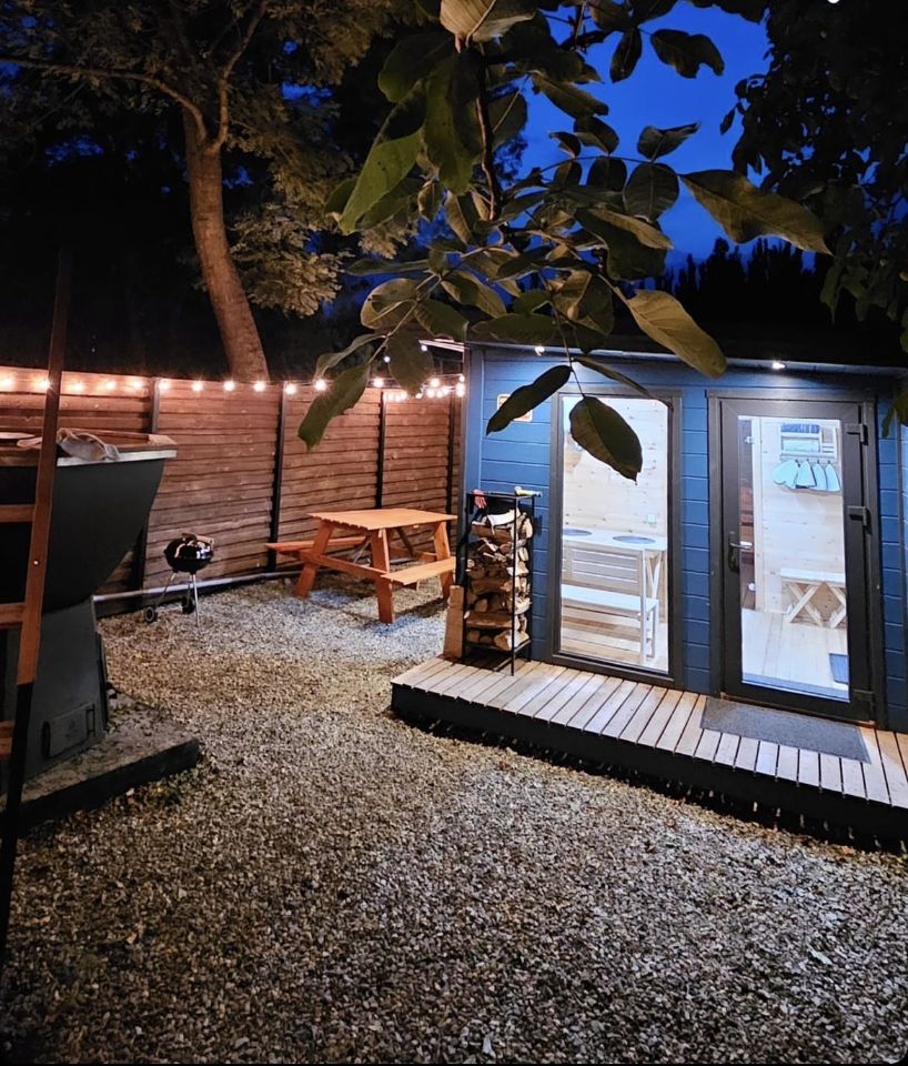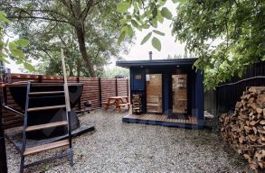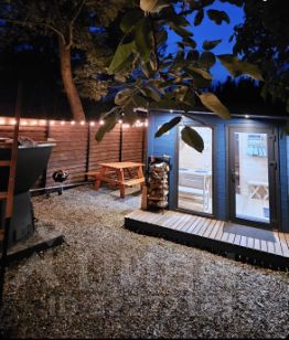 На берегу две бани с сибирскими чанами