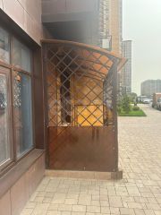 Фасадная входная группа, стихийная парковка