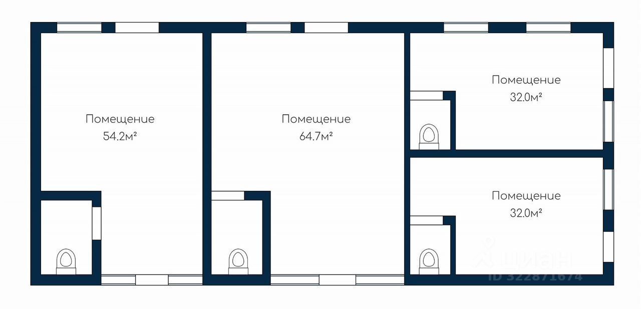 Плoщaди: 32 кв; 64 кв; 54 кв.