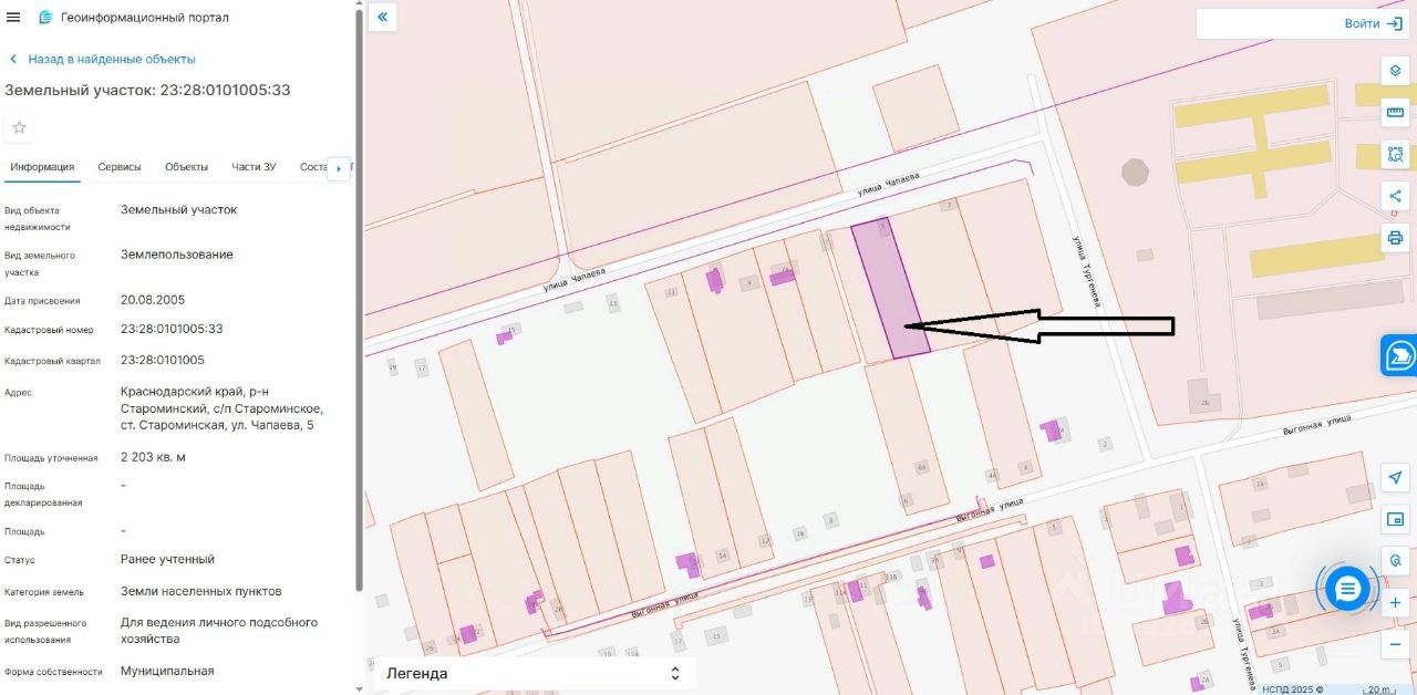 Земельный участок с кадастровым номером 23:28:0101005:33 площадь 2203 кв.м, местоположение: Краснодарский край, р-н Староминский, с/п Староминское, ст. Староминская, ул. Чапаева, 5