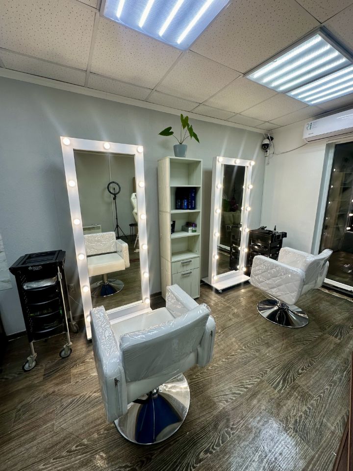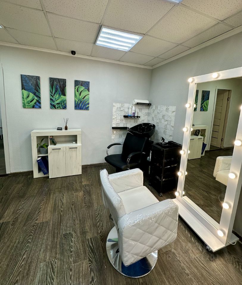 2 парикмахерских рабочих места (2 парикмахера на проценте) и отдельный кабинет ногтевого сервиса ( мастер на аренде со своим оборудованием: стол и педикюрное кресло в продажу не входят), место бровиста. Камера, куллер, боллер, вывеска.