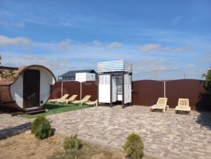 - баня-бочка из массива дерева, размером 6*2,5 (комната отдыха, моечная, парная) с обустроенной зоной отдыха рядом с баней (лежаки и др.)