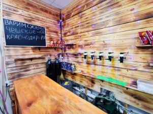 • Магазин разделён на две зоны: торговая площадь и бытовая секция с мокрыми точками.
