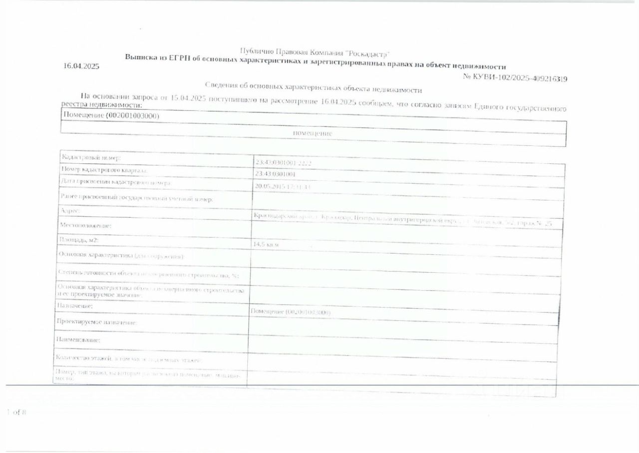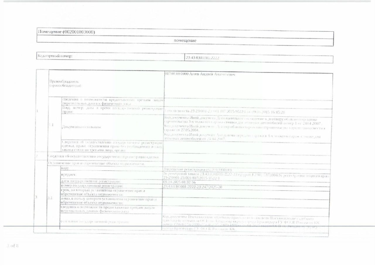 Д-к: Агеев А.А. Помещение нежилое, площадь 14,5 кв.м., кадастровый номер 23:43:0301001:2222. Адрес: Краснодарский край, г. Краснодар, ул. Зиповская, д. 5/2, гараж 25. Начальная цена 1 124 890 руб., задаток 168 734 руб., шаг аукциона 11 249 руб., ув.1141