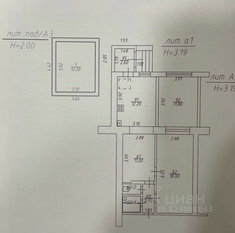 По факту 3 комнатная квартира 62 квадрата с отдельным входом и с подвальным помещением 12.2 квадратов