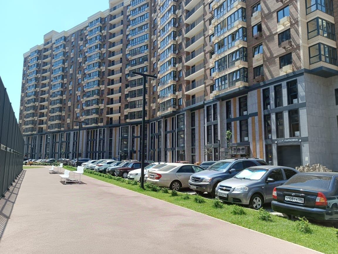 фасад на проезжую часть и пешеходную зону с большой парковочной зоной