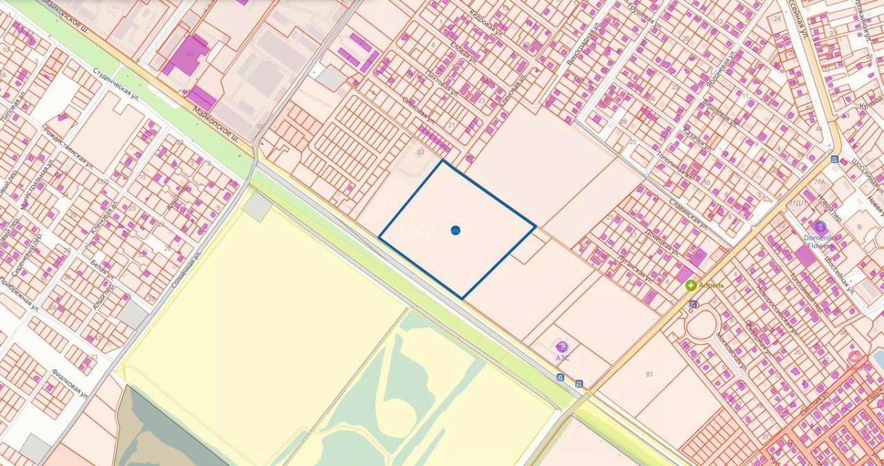 участок расположен вдоль Майкопского ш., до ж/д станции Белореченская 9 мин. на машине, 12 мин. - до центра Белореченска ;