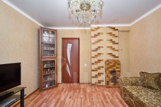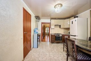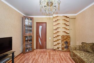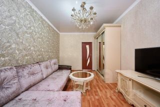 В квартире три комнаты - две смежные спальни и кухня, сан.узел.