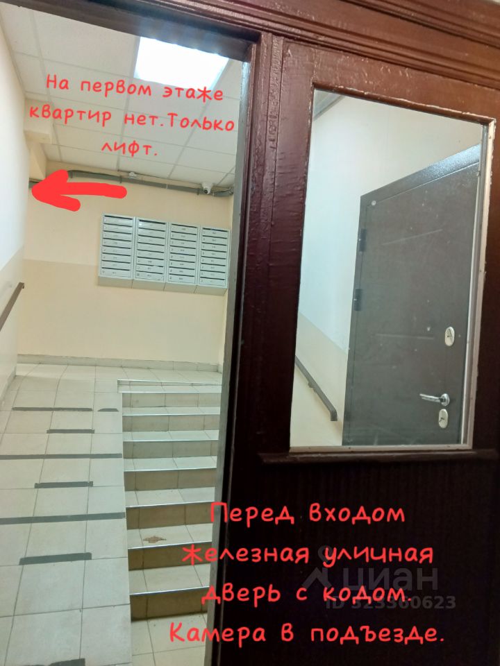 Вход в помещение через общую железную дверь подъезда. Код имеется. В подъезде камера. На этаже квартир с помещением нет. Соседствует со стенкой чужого складского помещения.