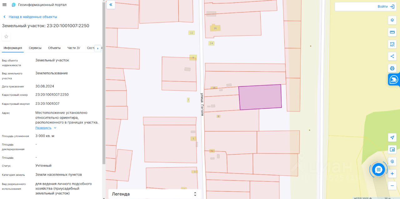 Земельный участок площадью 3000 кв.м, с кадастровым номером 23:20:1001007:2250, местоположение участка: Краснодарский край, Мостовский район, станица Переправная, улица Восточная, 1-Г, разрешенное использование: для ведения личного подсобного хозяйства (приусадебный земельный участок), категория земель: земли населенных пунктов.