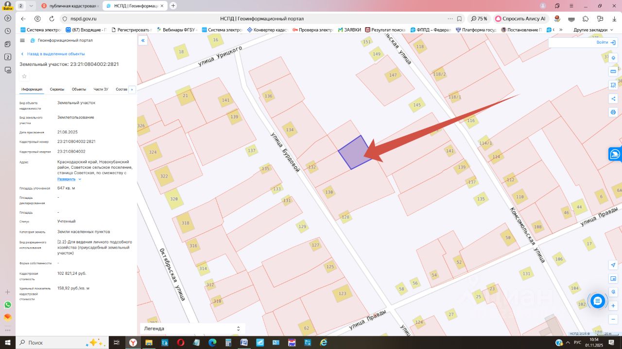 Земельный участок с кадастровым номером 23:21:0804002:2821, расположенный по адресу: Краснодарский край, Новокубанский район, Советское сельское поселение, станица Советская, по смежеству с земельным участком по улице Бурдовой, 132, общей площадью 647 квадратных метров, с видом разрешенного использования для ведения личного подсобного хозяйства (приусадебный земельный участок), относящегося к категории земель "земли населенных пунктов".