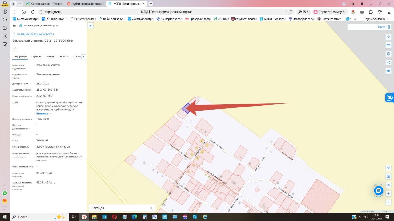 Земельный участок с кадастровым номером 23:21:0315001:588, с местоположением: Краснодарский край, Новокубанский район, Верхнекубанское сельское поселение, хутор Измайлов, по смежеству с земельным участком по улице Солнечная, 2/1, общей площадью 1 812 квадратных метров, с видом разрешенного использования для ведения личного подсобного хозяйства (приусадебный земельный участок), относящегося к категории земель "земли населенных пунктов".
