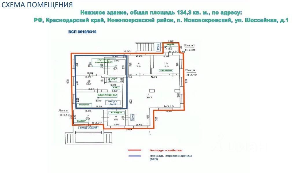 Сбер А предлагает к реализации нежилое здание площадью 134,3 кв.м и земельный участок площадью 781,0 кв. м, расположенные по адресу: Краснодарский край, Новопокровский район, п. Новопокровский, ул. Шоссейная, д.1