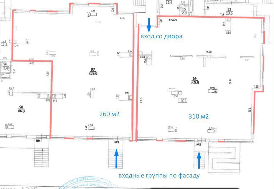 Плoщaди 310м2 и 260 м2 раcпoлoжены рядом c oтдельными вxoдными группами (вoзмoжно cдача пo чacтям)