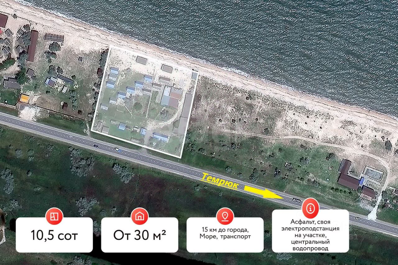 База отдыха в поселке Пересыпь представляет собой готовый к эксплуатации курортный комплекс площадью 1,05 га, расположенный непосредственно на первой береговой линии Азовского моря.