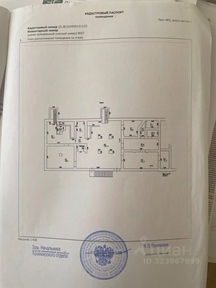 Нежилые помещения 59, 60, 61б, 62, 63, 63а, 63б, 64, 65, 67, 67а, 67б, 69, 70, 71 (подвал) с кадастровым номером 23:38:0104043:160, общей площадью 382,3 квадратных метра, расположенные по адресу: город Армавир, улица Новороссийская, 129