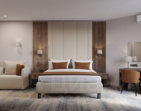 Застройщик — ООО "СЗ КАПСТРОЙ В" (Заслуженный строитель Анапы В.В. Леонтьев, на рынке с 2012 года). Управление после сдачи — УК "ЕН-отель" с 23-летним опытом. Номер передаётся "под ключ" с ремонтом, мебелью и техникой. Гарантированный пассивный доход начисляется ежеквартально.
