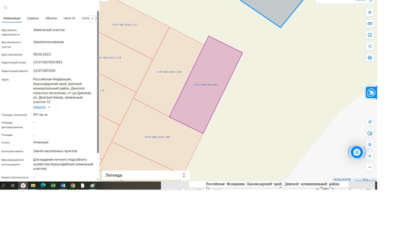 земельный участок, расположенный по адресу: Российская Федерация, Краснодарский край, Динской муниципальный район, Динское сельское поселение, ст. Динская, ул. Дмитрия Бакая, земельный участок 13, площадью 917 кв. м, с кадастровым номером 23:07:0811010:993, форма собственности: не разграничена, категория земель: земли населенных пунктов, с видом разрешенного использования: для ведения личного подсобного хозяйства (приусадебный земельный участок)