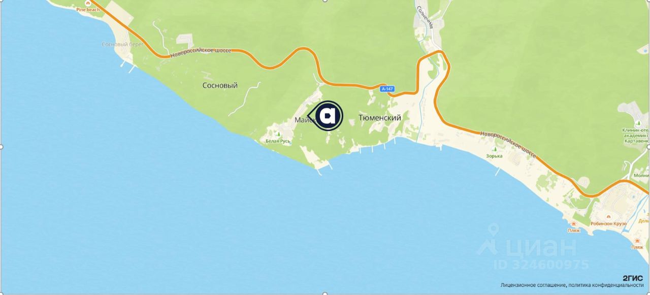 Объект находится в поселке пансионата "1 МАЯ", в минуте езды от федеральной трассы, до моря по дороге 200 метров.