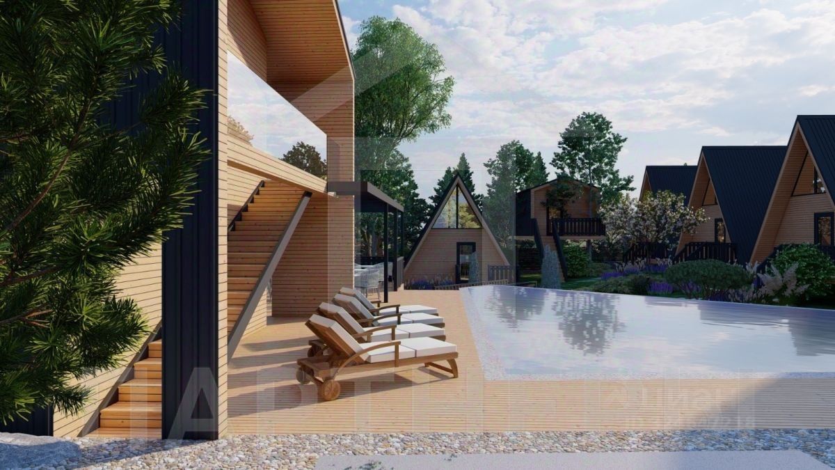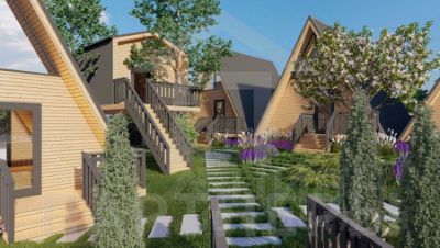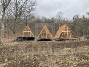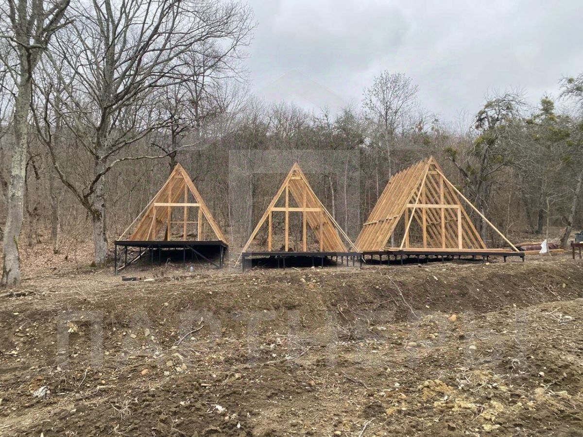 2. Недостроенные домики: На территории уже находятся каркасы домиков по технологии А-фрейм (модный и востребованный формат эко-глэмпинга). Их можно быстро достроить.