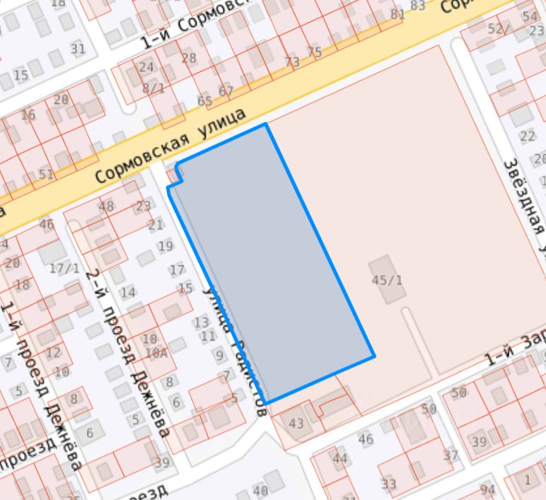 Продается фасадный земельный участок на ул. Сормовская — одной из главных транспортных артерий Комсомольского микрорайона.