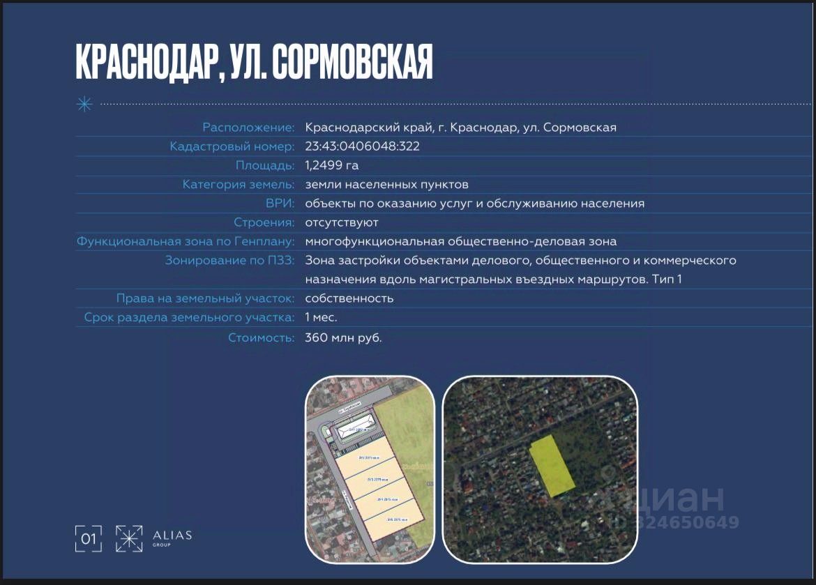 Земельный участок 1,25 Га под коммерцию в центре КМР (Краснодар)