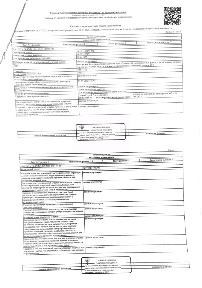 Д-к: Мосцевая А.Ю. Земельный участок (для индивидуального жилищного строительства), площадь 800 кв.м., кадастровый номер 23:27:1102172:390. Адрес: Краснодарский край, Славянский район, ст. Анастасиевская, ул. Колхозная, д. 49/1. Начальная цена 416 840 руб., задаток 417 руб., шаг аукциона 4 169 руб., ув. 1387