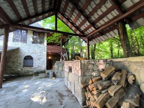 Имеется сауна, бассейн, гостевые комнаты, огромный банкетный зал и кухня на 2м этаже, балконы и террасы, с которых открывается чудесный вид на Предгорье Кавказа, лес, реку.
